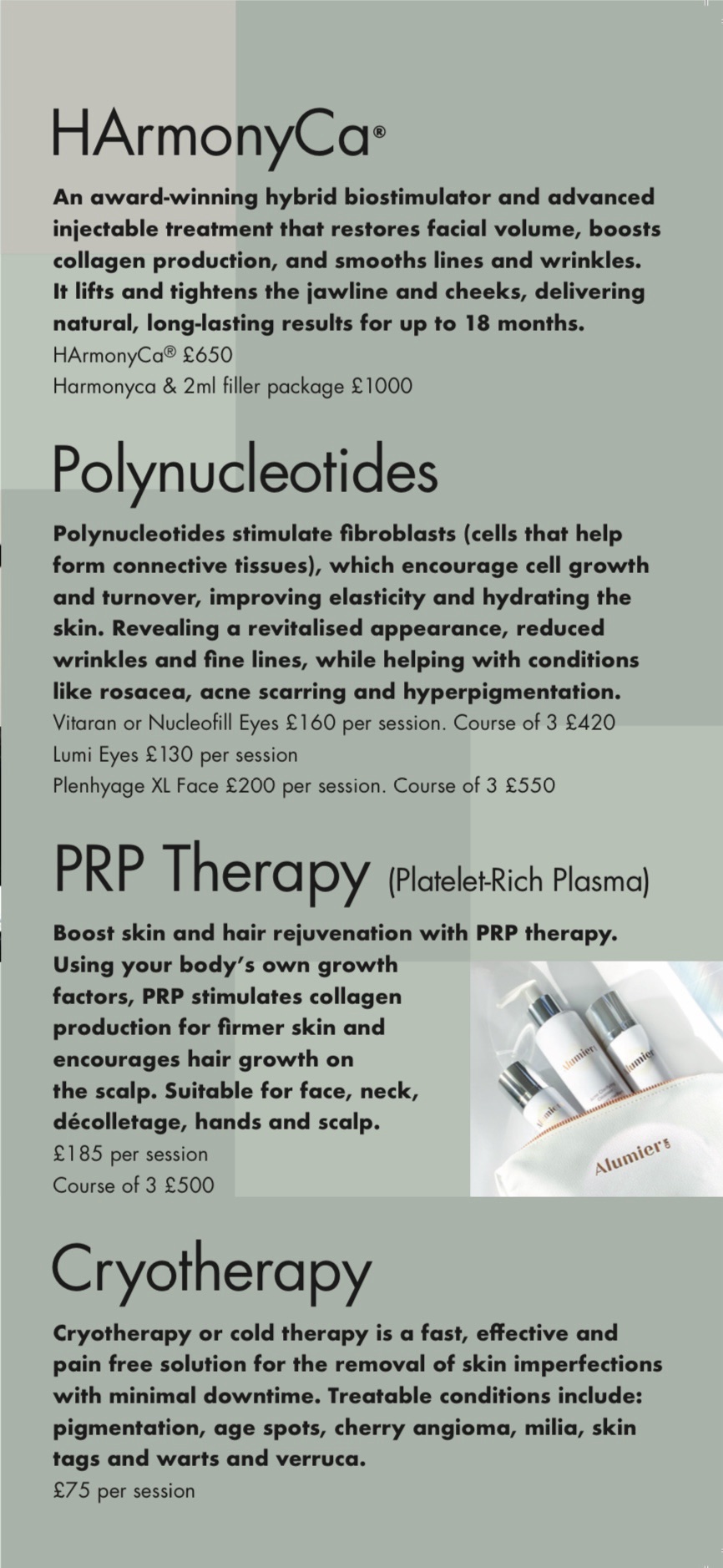 We only use the highest quality and scientifically derived products. All our treatments are carried out by our fully qualified and insured therapists & doctors.